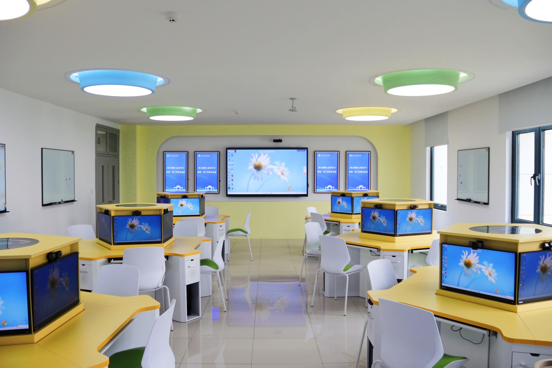 实验室以“AI+语言教育”深度融合为理念,占地约80平方米,配备30台高性能计算机及NVIDIARTX4090专业算力设备,搭载“凌极智慧语言实验室”平台,构建起“教学云平台+新形态教学环境”双轮驱动体系,实现课前、课中、课后全流程智能化管理。智能教师讲台、双核环流智慧屏、小组智慧研讨桌等设备,进一步适配多样化教学场景。