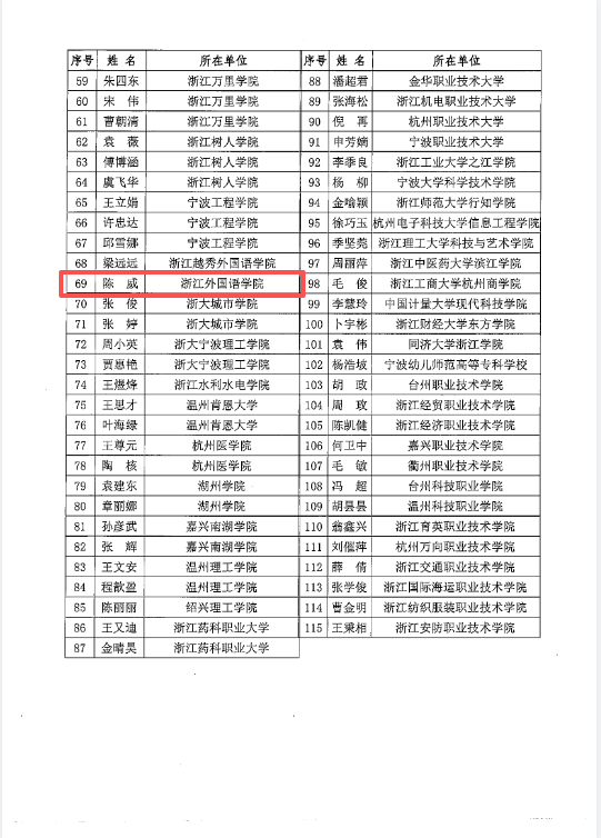 年浙江省高校实验室工作先进评选结果,我校艺术学院陈威老师荣获浙江省高校实验室工作