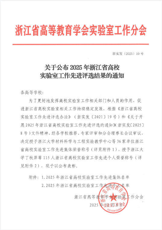 喜报!我校陈威老师在2025年浙江省高校实验室先进评选中喜获“先进个人”